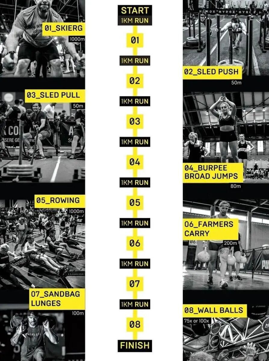 相比CrossFit(综合格斗健身)和马拉松的高门槛,HYROX的门槛适中,不会让健身新手望而却步。
