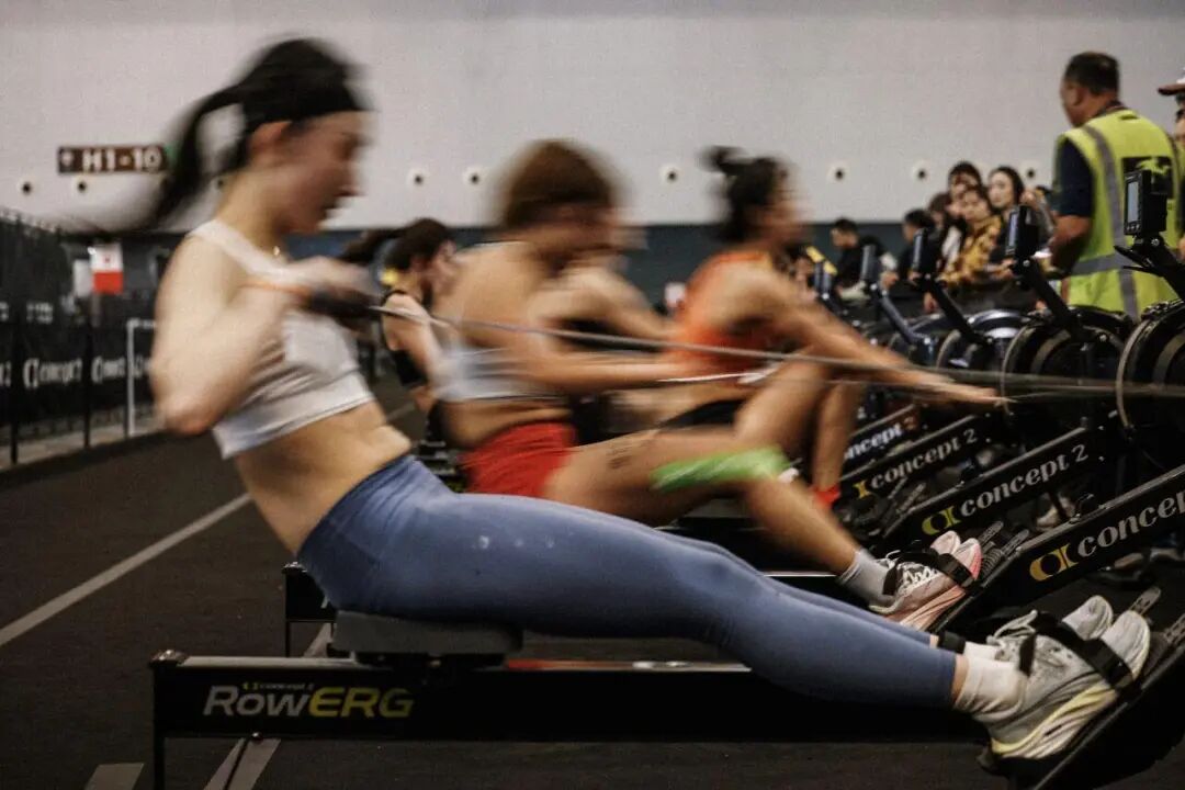 选手每跑完1公里,就要完成一个健身项目,循环8次才算完赛。这8个项目包括滑雪机、划船机、推雪橇、拉雪橇、波比跳远、负重弓箭步等。