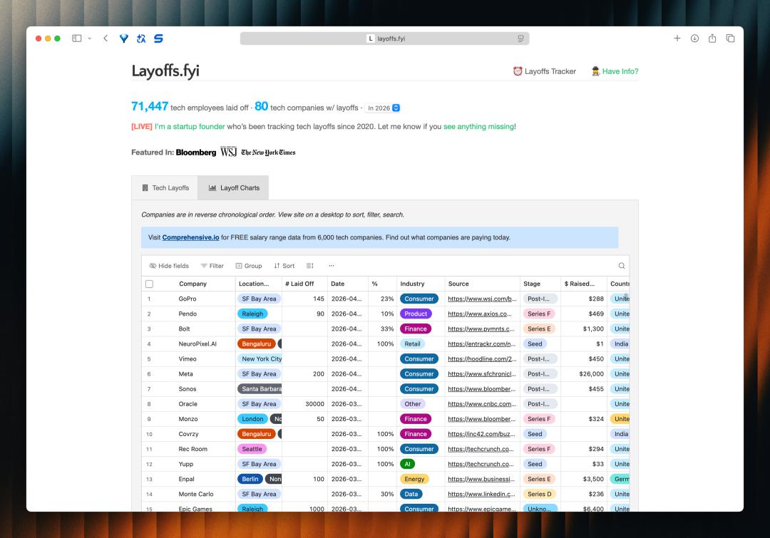 Layoffs.fyi统计页面