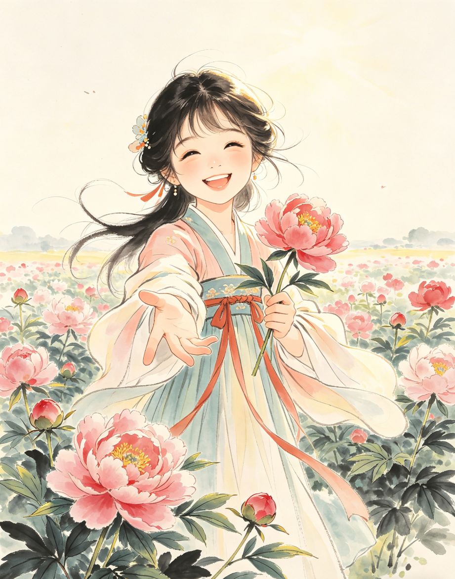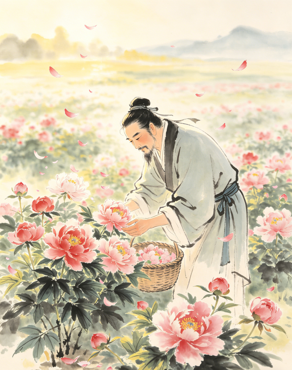 她提着竹篮,笑语盈盈。与她猜拳,赢了便可获得一朵新鲜芍药;输了也无妨,喝一杯清香的芍药花茶,一口入喉,整个人都轻快了起来。