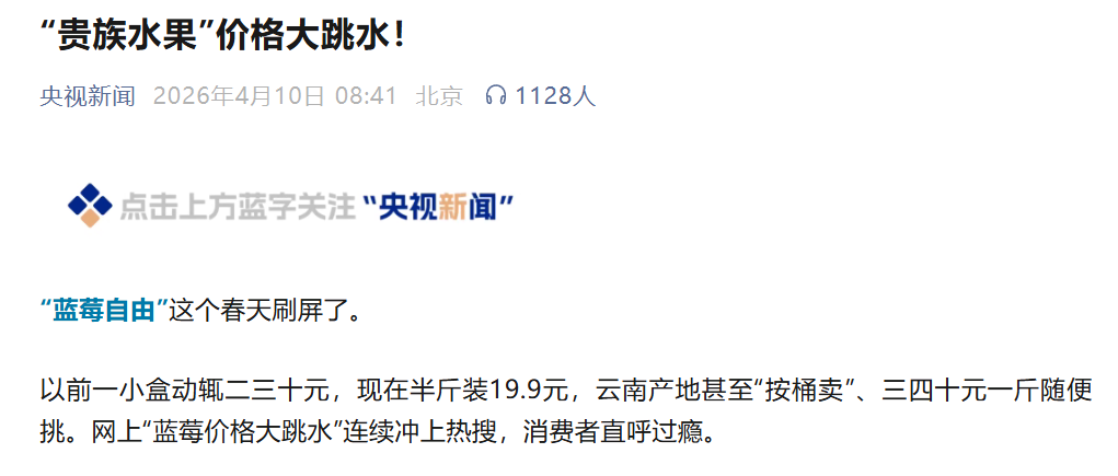 从“高价难求”到“轻松实现自由”,蓝莓价格大降背后藏着哪些秘密?