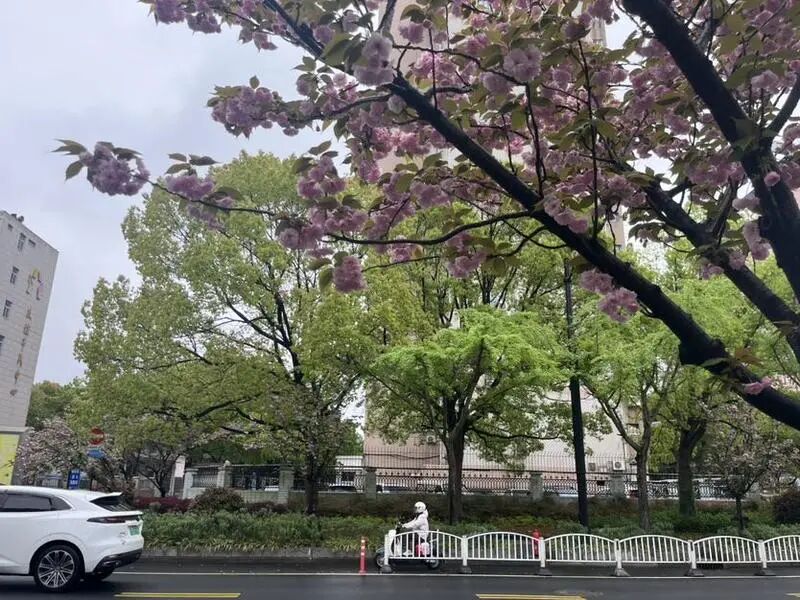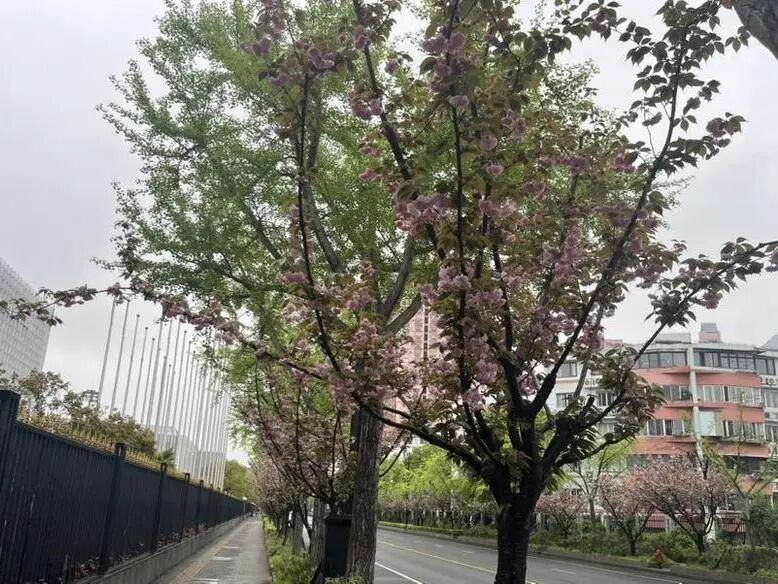 目前,永清路的晚樱正处于盛花期,最佳观赏期会持续到四月下旬。市民可以慢慢走在这条路上,沉浸式感受粉樱映银杏的春日景色,赴一场独特的生态春日约会。