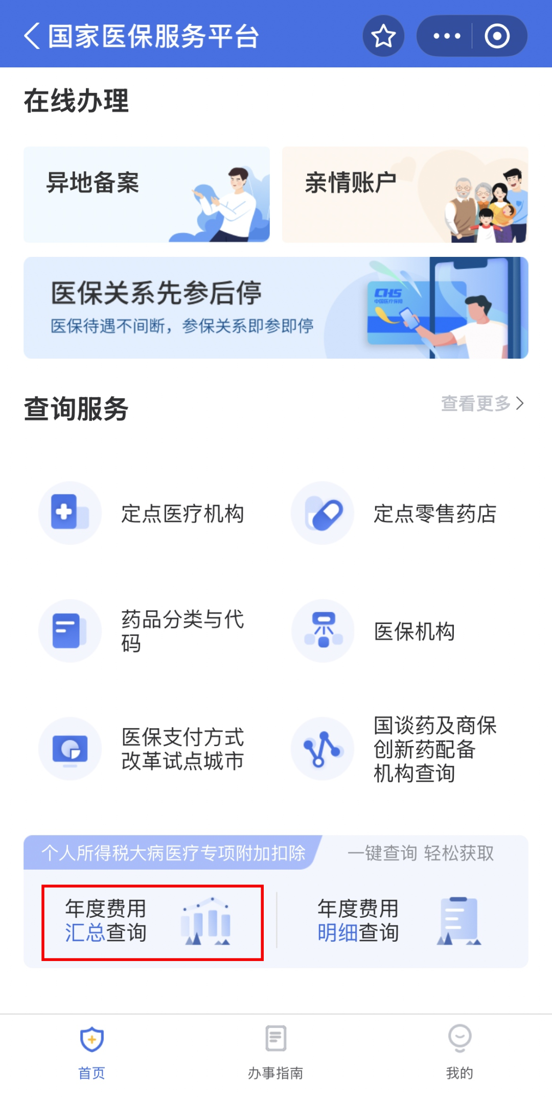 填写大病医疗扣除,核心是要准确获取医药费用总金额和医保目录内个人自付总金额,这些数据都能在“国家医保服务平台”一键查询到,步骤非常简单: