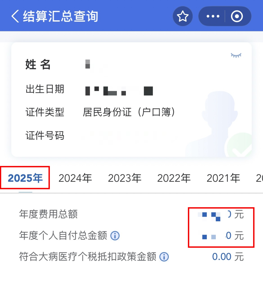 下载“国家医保服务平台”APP,或者在支付宝/微信搜索同名小程序,登录后进入首页,点击【年度费用汇总查询】,选择2025年度,就能看到年度费用总额和年度个人自付总金额,截图保存!这两个数据直接对应个税APP里要填写的内容;