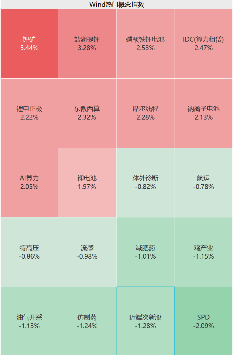 从盘面上看,电力设备、通信、有色金属、计算机等板块表现强劲;电池产业链迎来爆发,锂矿、磷酸铁锂电池、钠离子电池等细分方向热度高涨;石油石化、医药生物等板块则走势偏弱。
