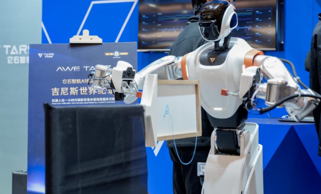 硬件产品上,它石智航已推出轮式工业机器人A系列和双足通用机器人T系列。其中A系列机器人可实现亚毫米级精度装配操作,针对工业领域被称为“哥德巴赫猜想”的高难度线束装配任务,今年3月,A1机器人在1小时内完成亚毫米级柔性线束完整装配超百次,创下中国具身智能企业在工业精密操作领域的首个吉尼斯世界纪录。