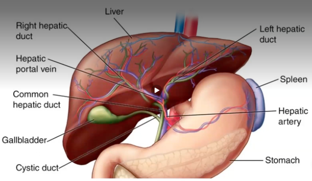 肝脏、脾脏(淡紫色)和胃的解剖结构。来源:Liver&Spleen:Normal and Not/Youtube