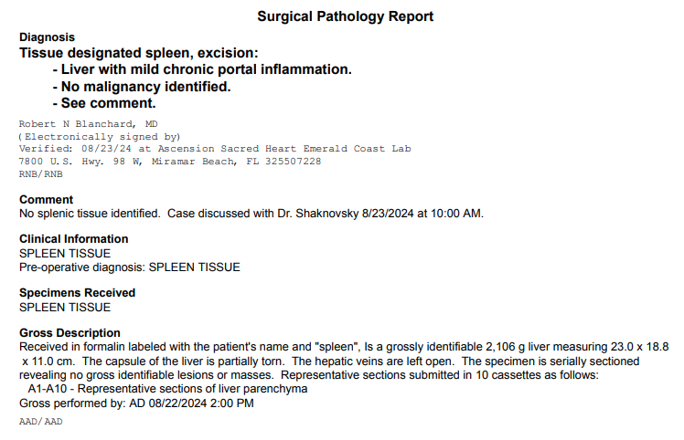 病理报告明确显示被切下的组织为肝脏。来源:Ars Technica