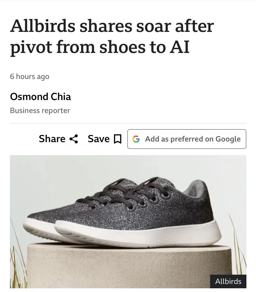 Allbirds更名NewBird AI:硅谷网红鞋企转型AI引股价暴涨,背后是技术泡沫的轮回?
