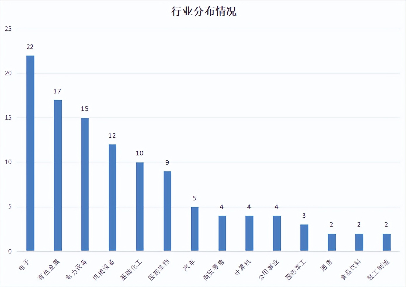 除电子行业外,有色金属、电力设备、机械设备等行业也有较多公司同比增长,呈现多点开花态势。如有色金属行业的西部黄金(601069.SH)、宁波富邦(600768.SH),电力设备行业的嘉元科技(688388.SH)、宝胜股份(600973.SH)等。
