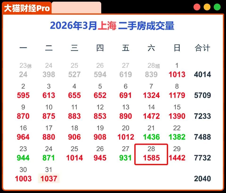 以上海为例,3月份二手房网签量达到3.1万套,创下近5年来的单月成交纪录,3月28日单日成交1585套,仿佛回到了2021年的市场热度,而4月11日的单日成交量更是突破了1600套。