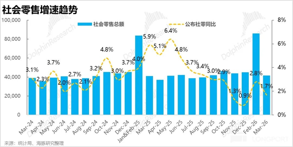 本文源自微信公众号“海豚研究”,作者为海豚君,原标题为《3月社零点评:消费倒春寒?问题有多大》
