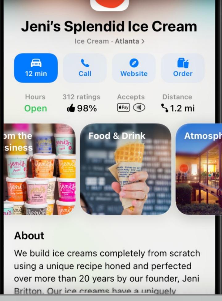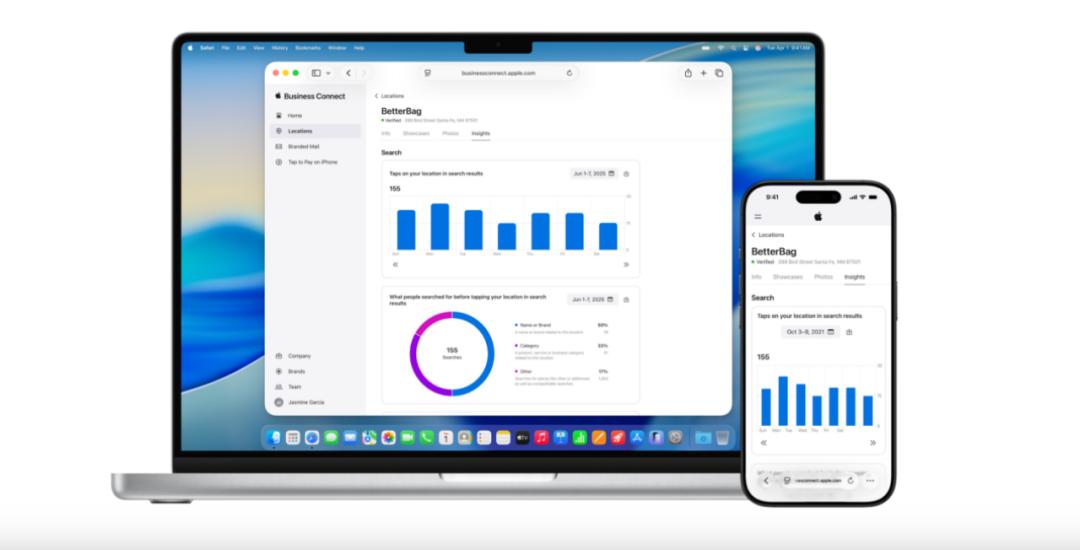 企业不仅能在多个场景露出logo、展示门店信息进行品牌曝光,还能通过Apple Business平台确保品牌内容资产在iOS生态内的一致性。