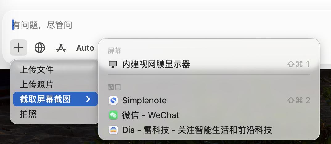 不过这个交互设计早已成为「标准」。至少以我的使用经验来看,几乎所有AI助手或浏览器的桌面端都标配了这个功能。硬要说区别的话,主要在于「位置」,比如ChatGPT桌面端提供「中下」「左下」「右下」以及「记住上次位置」选项,而Gemini则强制使用上次位置。