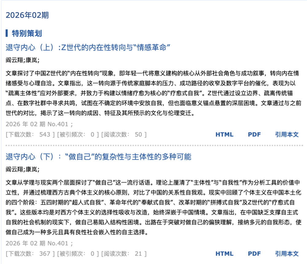 (《当代青年》阎云翔关于“内在性转向”的论文)