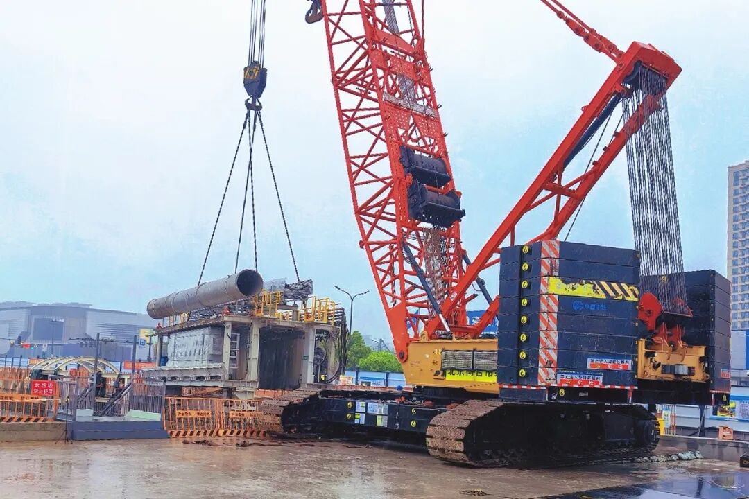 中铁电气化局集团有限公司台州市域铁路S2线土建5标盾构负责人刘尚伦介绍,土建5标涵盖三站三区间,全长5.7千米,均为地下段。目前整体产值完成约43%,机东路站主体结构施工已完成约80%。市民广场站和东环大道站正处于土方开挖阶段,作为盾构始发站的机东路站,右线盾构机正在进行吊装下井作业,预计5月中下旬就能始发。