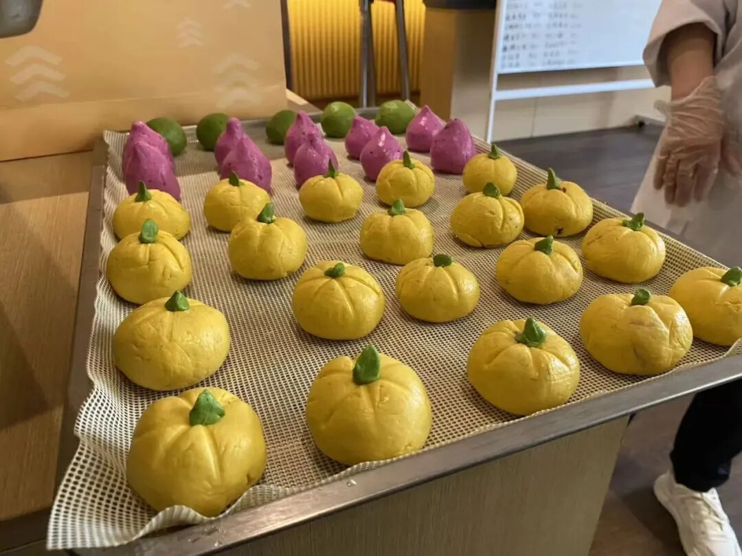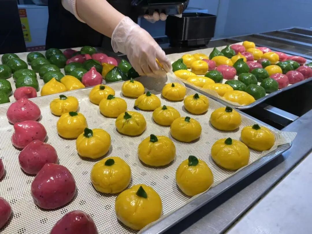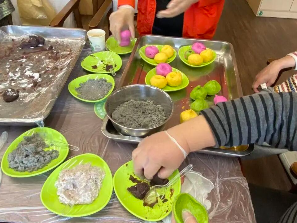 工作人员提前备好了色彩鲜艳的面团,以及黑芝麻、蛋黄肉松等甜咸兼具的馅料。在师傅的示范指导下,大家纷纷动手包制团子,互相交流手法、分享经验,不一会儿,造型各异的团子便整齐摆上蒸笼。热气腾腾的团子出锅后,软糯的外皮裹着香甜鲜美的馅料,让人食欲大开。