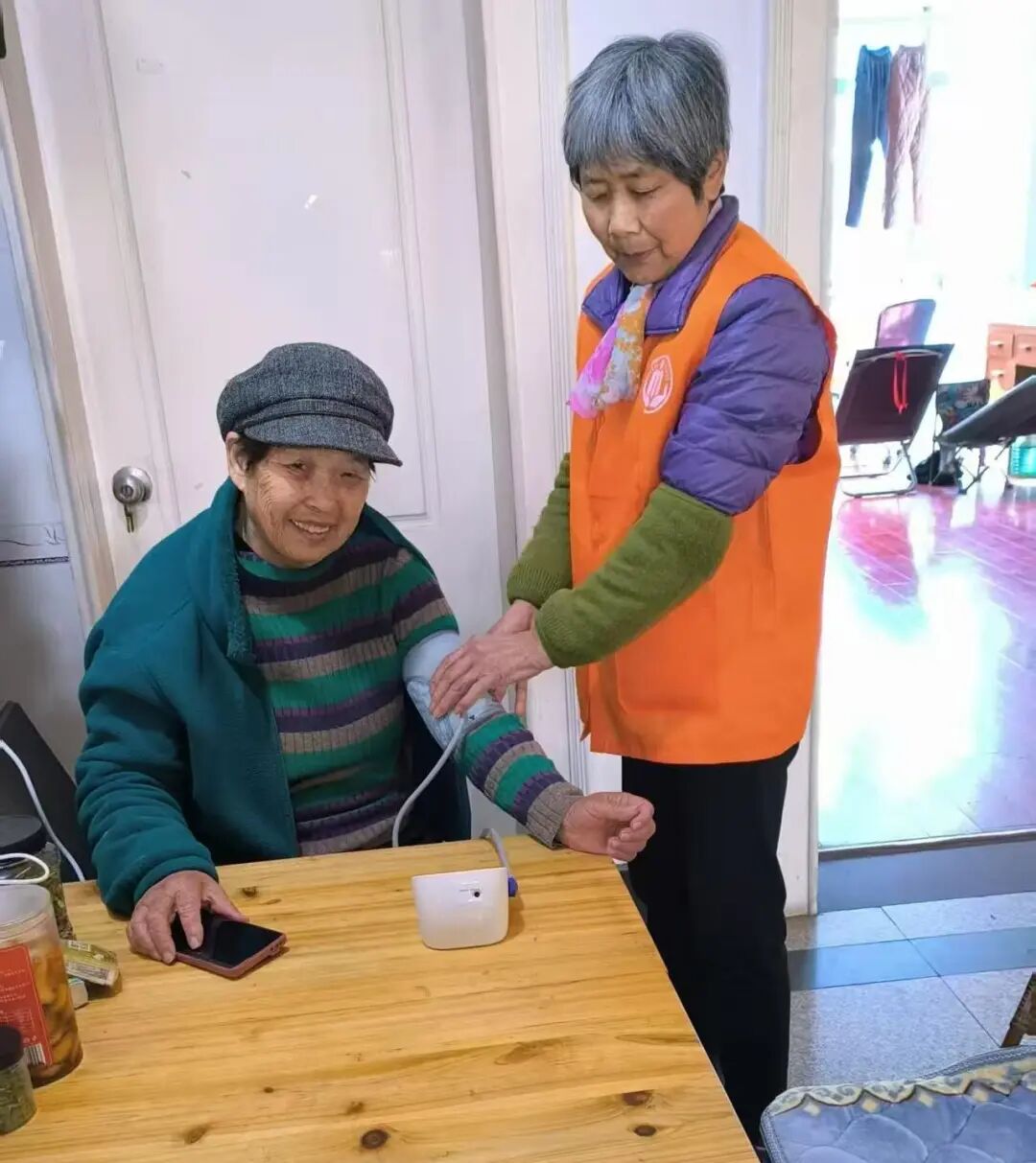 日常服务中,服务队志愿者坚持每周至少两次上门探望,特殊情况则每日或隔日探访,全力解决老人急难愁盼。团队有个硬核规矩:连续两次电话无人接听,必须立即上门查看,用责任守护老人安危。