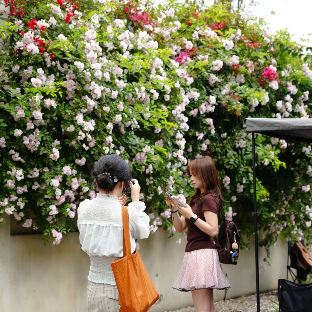 一墙蔷薇盛放,整座城市便弥漫着芬芳。这个周末,不妨约上三五好友,在街头寻找一面花墙,寻觅一处花瀑,感受这份扑面而来的限定浪漫。
