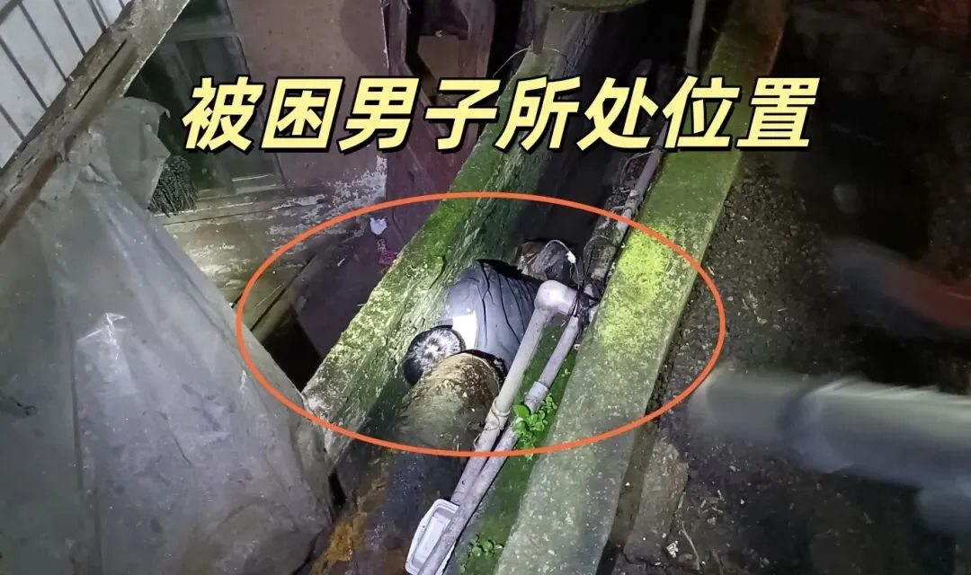 由于被困男子所在的排污口空间狭窄
