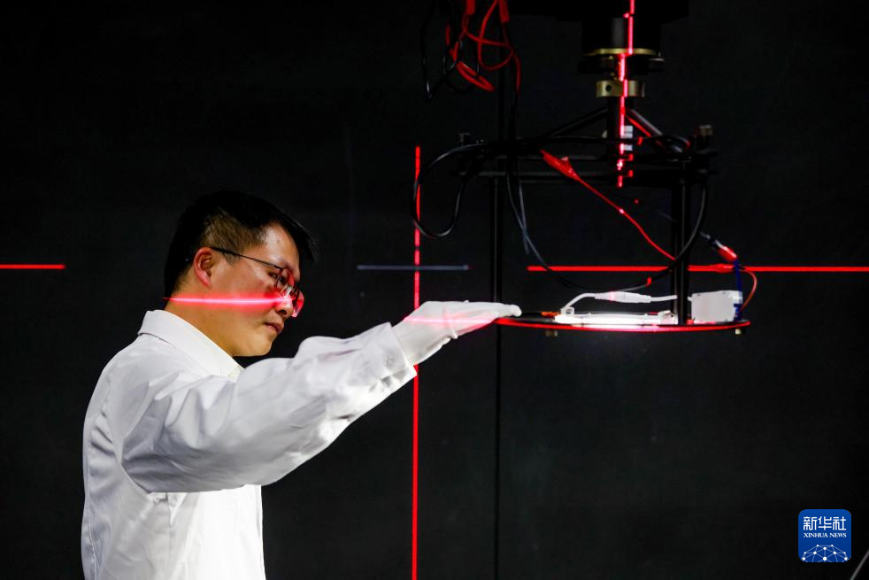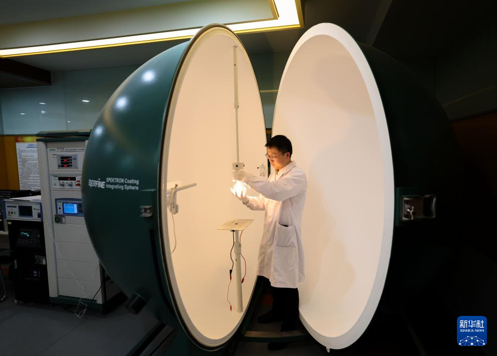 4月17日,技术员在毕节高新技术产业开发区的一家光学技术企业内对灯具光度性能进行检测。李华 摄