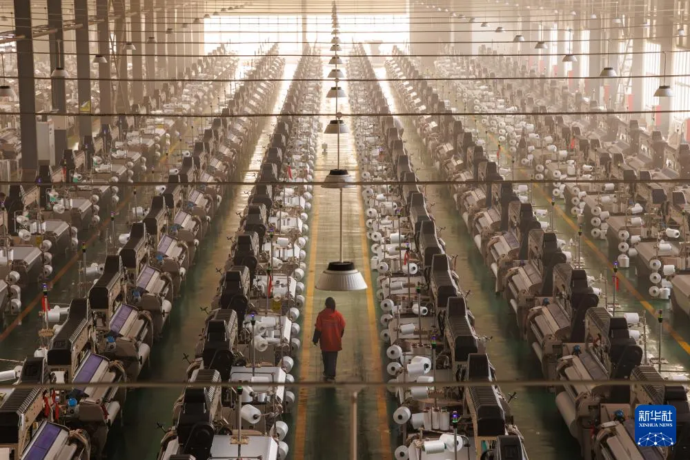 4月17日,毕节高新技术产业开发区内的一家纺织企业里,机器正开足马力全力生产。刘续 摄