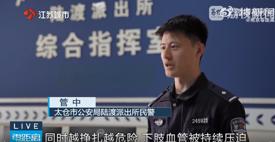 苏州太仓市公安局陆渡派出所民警赶到后,安抚小宋情绪并小心调整角度,将她双脚取出。脱困后小宋双腿麻木僵硬无法站立,民警搀扶她到路边花坛休息缓解不适。