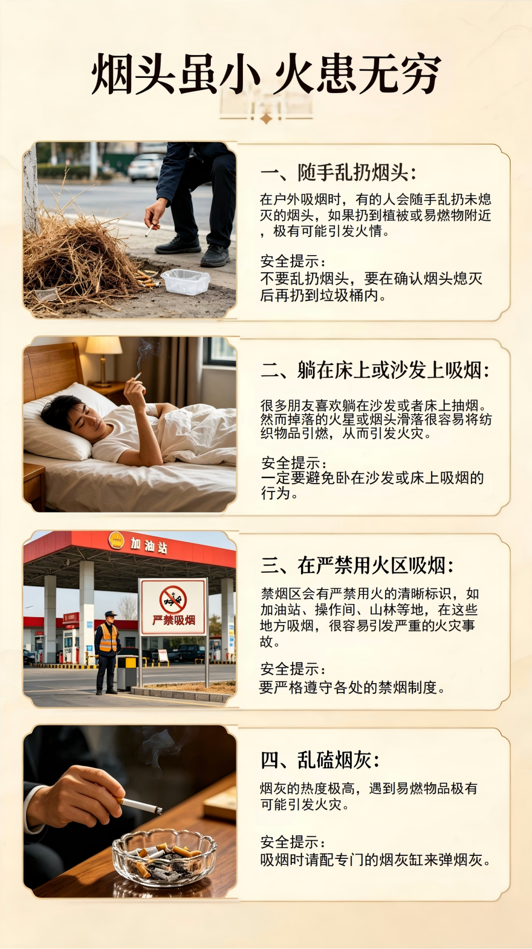 ▶安全意识缺失:死者常某长期存在卧床吸烟的坏习惯,吸烟后没有把烟头彻底熄灭。火灾发生初期,他也没能及时采取有效的灭火和逃生措施,最终导致悲剧发生。