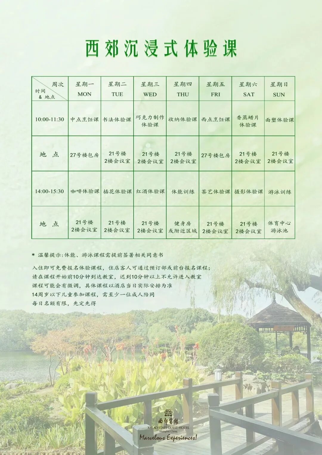酒店每日推出沉浸式体验课