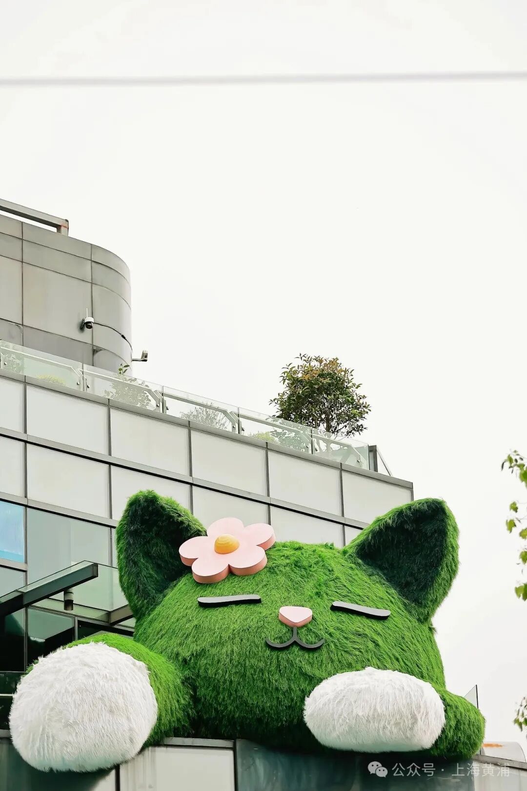 思南街区首次呈现的治愈系绿植萌猫装置「思南猫憩」静卧重庆路广场,邀请大家抬头微笑、放空心灵;