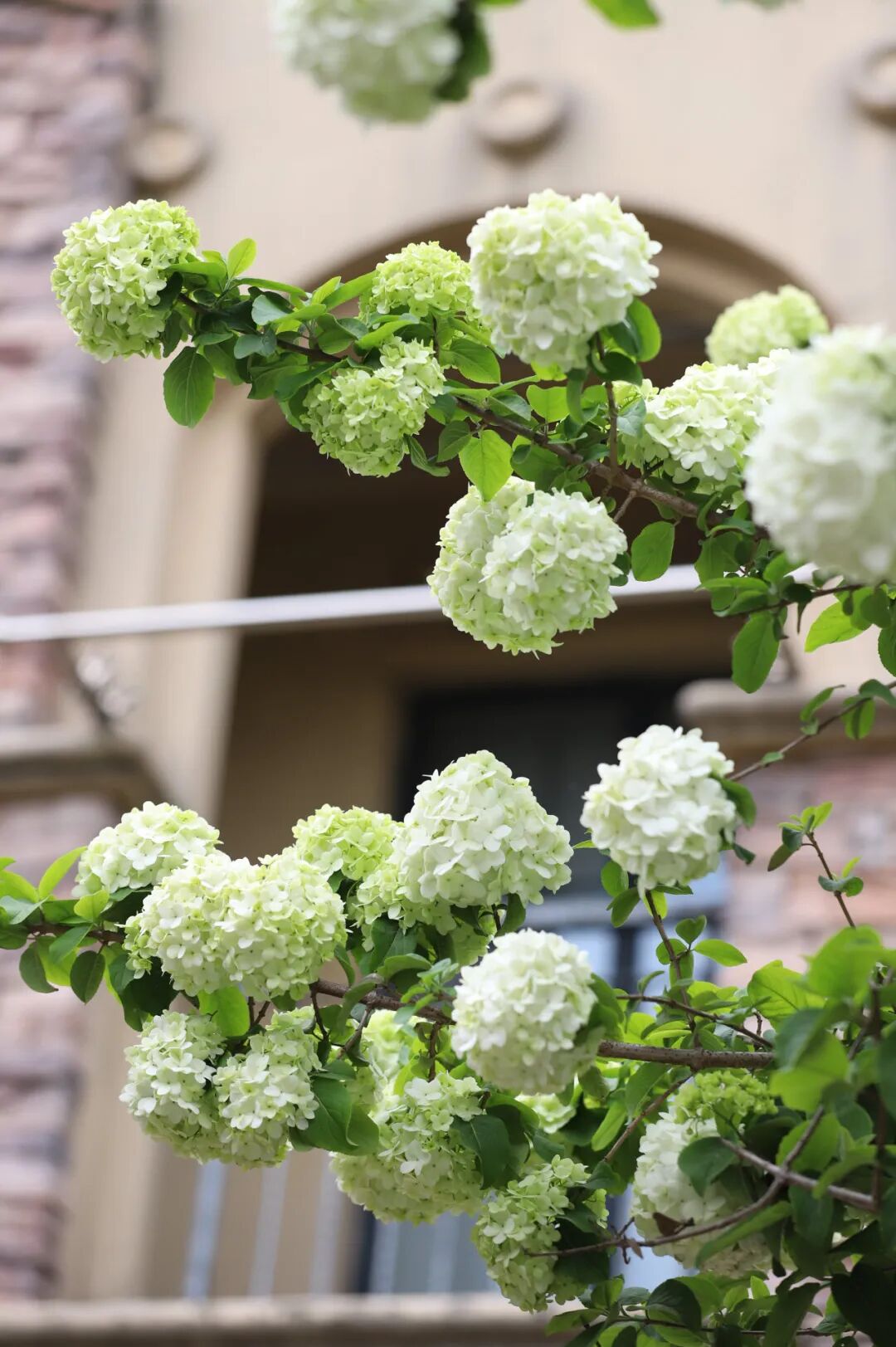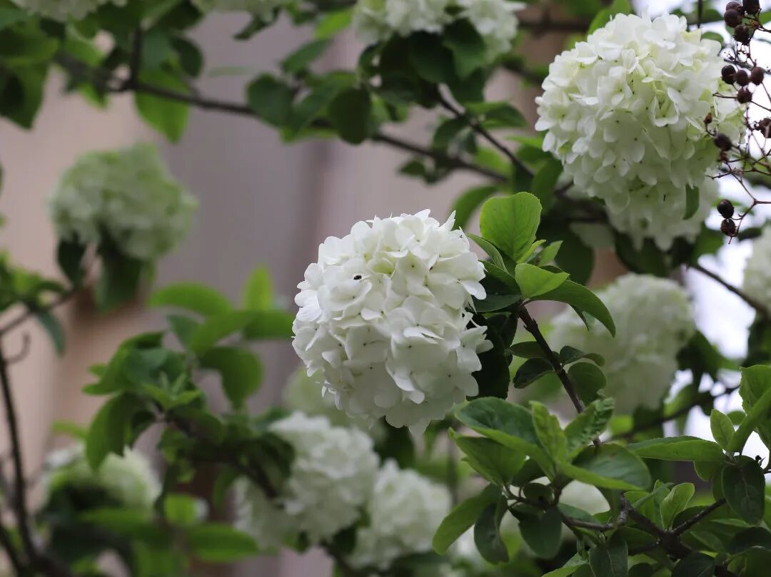 木绣球初绽时带着嫩豆绿,似春天还在斟酌落笔。待它打定主意,便肆意地绽放洁白——一团团、一簇簇,如雪球般缀满枝头。立于树下仰望,便会忽然领悟“圆满”的模样。