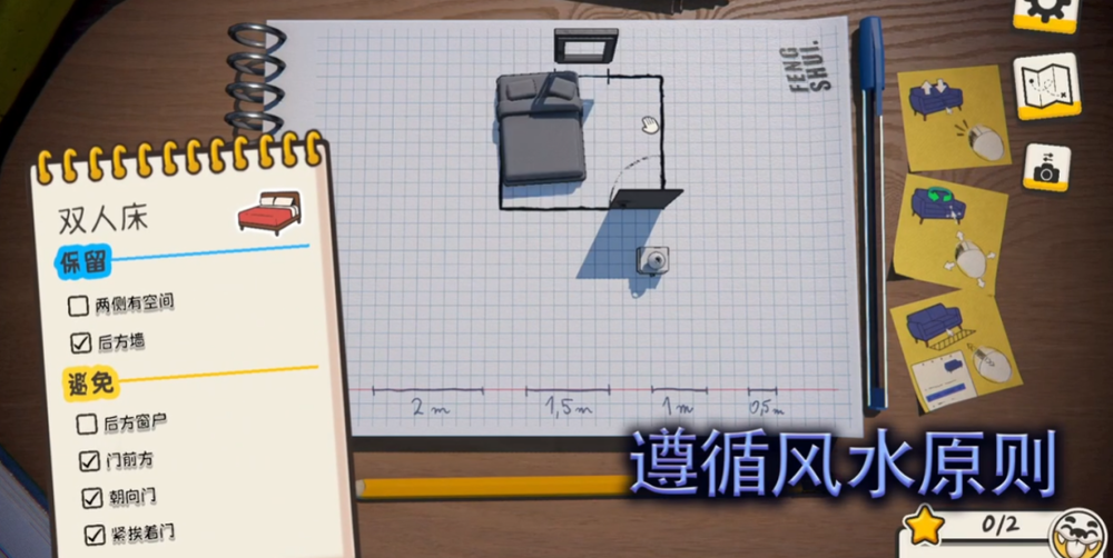 单个家具摆放看似简单,但像现实家装一样,有限空间里要容纳多件家具,兼顾实用、美观和风水规则,十分烧脑。