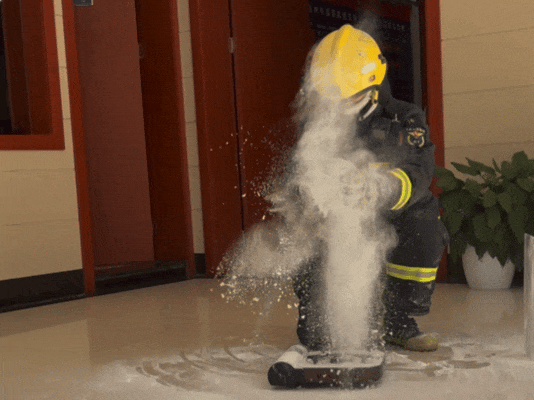 消防员将面粉从一定高度散落到燃烧的酒精灯和卡式炉上方,模拟燃气灶旁抖面粉袋的场景。结果显示,悬浮的面粉颗粒接触明火,无论火势大小,都会瞬间形成火团,存在即燃风险。