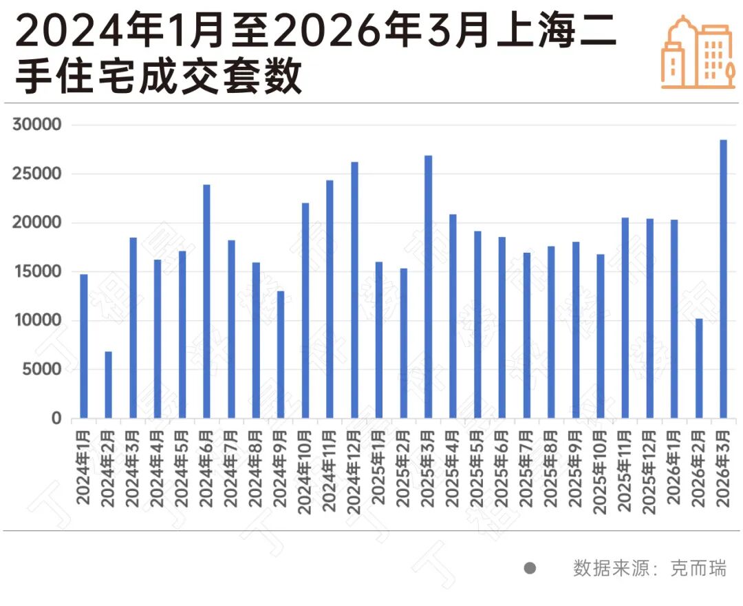 克而瑞数据显示,2026年3月上海二手住宅成交28492套,在2025年3月较高基数的基础上同比增长6%,成交套数创下近5年新高。
