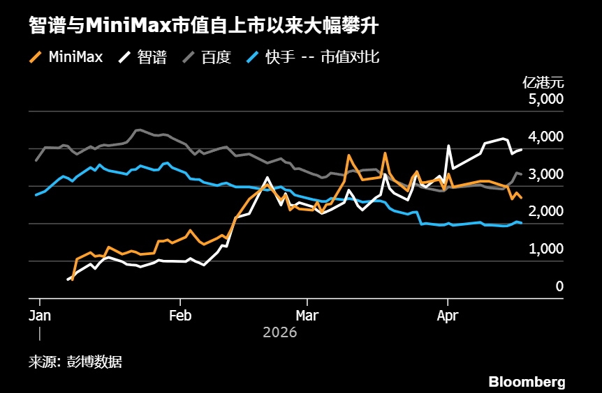 今年年初,这两家公司先后完成上市。截至上周五收盘,智谱股价涨幅超650%,MiniMax股价涨幅超400%,当前市值已分别超越百度和快手。