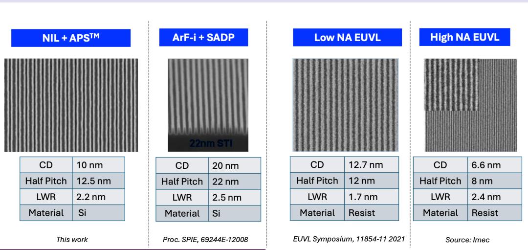 APS是纳米压印光刻(NIL)的有力补充,可扩展密集线条图案分辨率,作为SADP、SAQP和LELE等传统多重图形化技术的替代方案,具有降低成本、提升分辨率和更好可持续性的潜力。