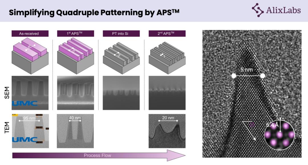 2025年,AlixLabs与联电(UMC)合作进行晶圆级演示,使用浸没式氟化氩(ArFi)光刻技术,成功实现19nm半节距。