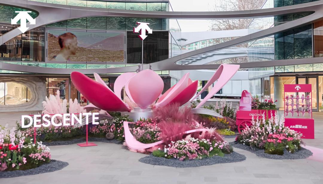 迪桑特借“花苞”产品语言,将活动空间、版型设计与女性叙事融为一体。北京全球旗舰店的“春日花海”限时空间,把BODY FLEX系列理念转化为可见场景:花朵从收拢到盛放,对应女性在训练中积累能量、日常中逐渐舒展的过程。