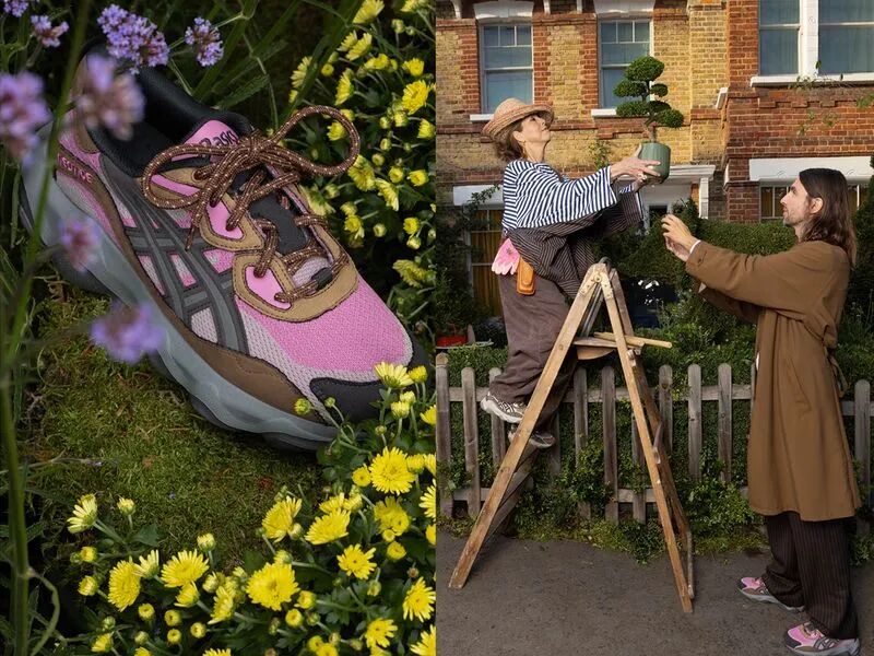 ASICS SportStyle今年推出的NEOTIDE则是另一种思路。品牌未将植物局限于鞋面图案或季节配色,而是直接把园艺与自然写入产品故事。