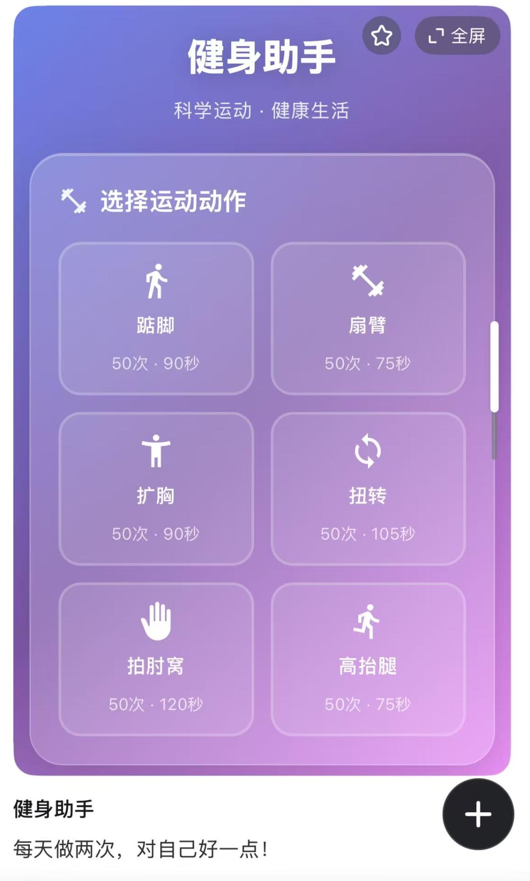 有久坐不动的办公室职员,为了提醒自己时不时起来活动,制作了一个“健身助手”,督促大家每日完成6个基础又简单的动作;