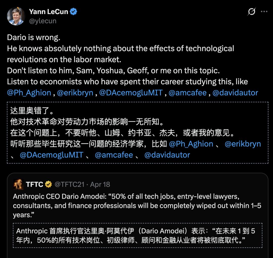 LeCun呼吁大家听专业经济学家,别被AI掌门人忽悠。