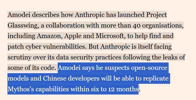 Amodei承认,面对大洋彼岸的追赶者,Anthropic的领先优势可能只剩6-12个月。