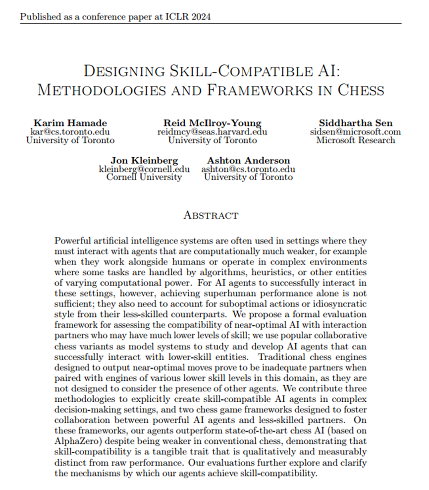 一篇发表于全球人工智能顶会ICLR 2024的研究,通过一个象棋实验告诉我们:AI的价值,不仅在于它的能力强弱,更在于它是否与你“适配”。