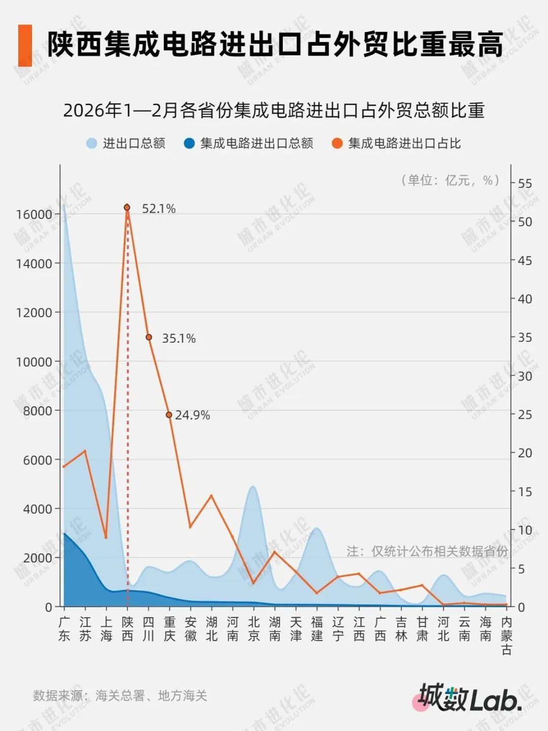 今年一季度,我国外贸市场热度攀升。全国外贸货物进出口总额达11.84万亿元,进口与出口均实现两位数增长。受全球AI算力需求爆发的推动,集成电路作为我国最大外贸单品,出口金额同比大增77.5%。在此背景下,西安、重庆、合肥等半导体产业集中的城市强势崛起,悄然改变着全国外贸城市的实力格局。据海关总署数据,今年一季度西安、福州、重庆、唐山、合肥的外贸进出口增速分别为74.2%、35.6%、34.3%、33.8%、33.7%,在全国处于领先位置。其中,不临海、不沿边的西安表现尤为突出,外贸规模达1819.22亿元,接连超过郑州、南京、大连、烟台、佛山五个城市,成为外贸领域的“最大黑马”。西安究竟凭借什么实现这一突破?