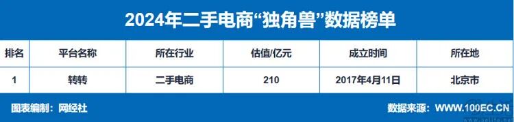 尽管“买卖二手手机上转转”的广告随处可见,但转转当前的发展状况并不乐观。资本市场上,公司估值近年来一直维持在200亿元左右,增长乏力。网经社《2024年度中国二手电商市场数据报告》显示,2024年转转估值为210亿元,同比仅增长2.4%。