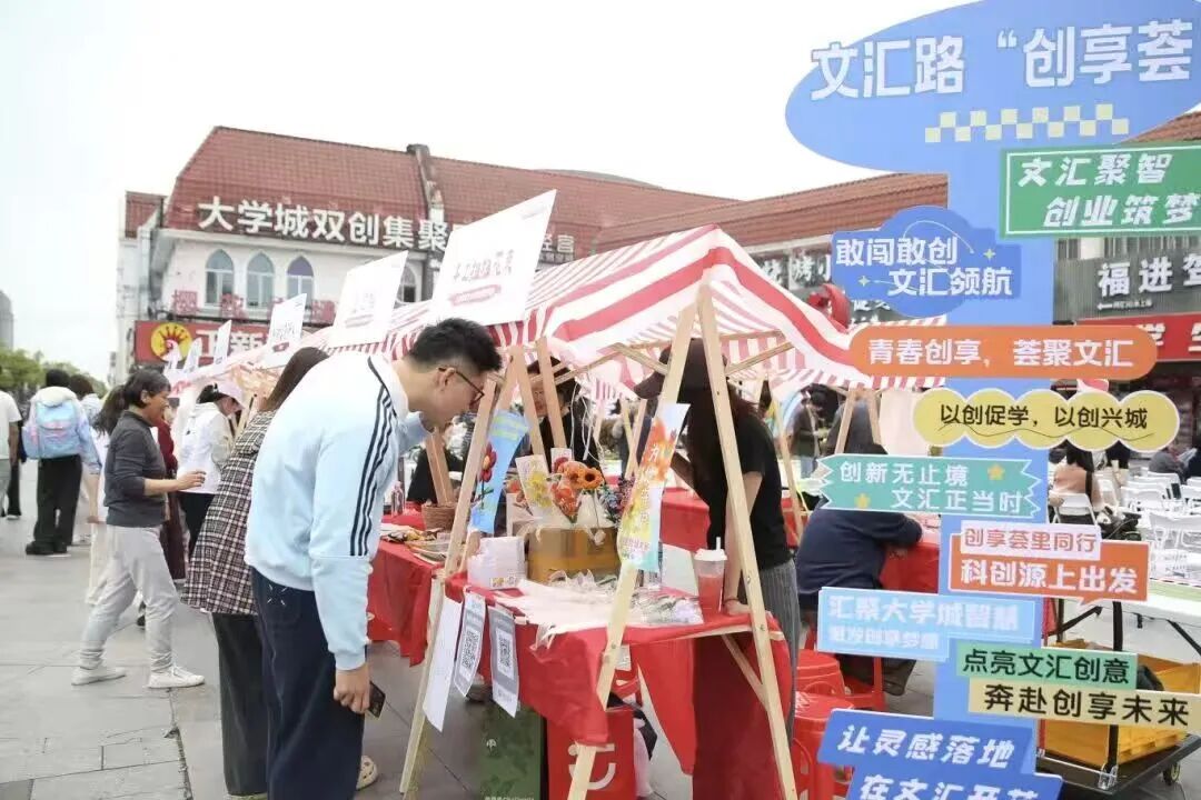 活动现场,大学生创业团队、归雁商户、特色经营主体集中参展,各类创新产品、特色服务及优质创业项目纷纷亮相,吸引众多市民游客驻足参观。受邀代表通过快闪路演分享创业历程与特色项目成果,上海对外经贸大学、上海立信会计金融学院、上海视觉艺术学院等高校集中展示校地协同共建的工作成效。