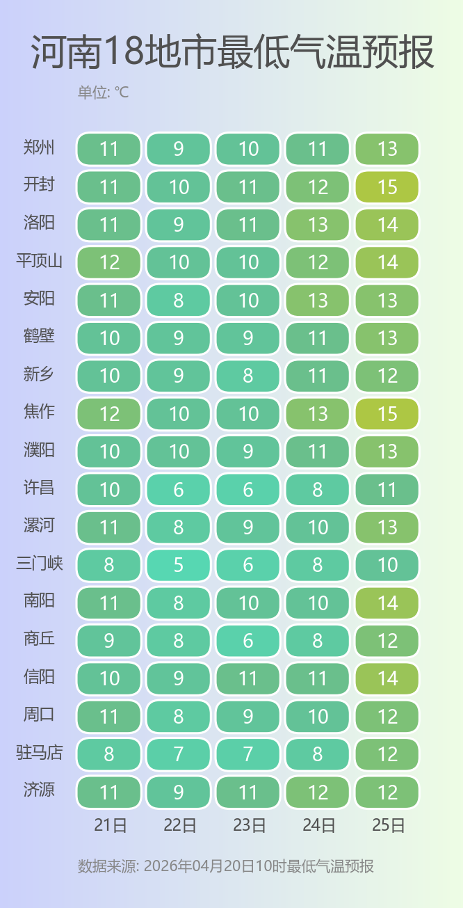 最低气温区间:10~11℃