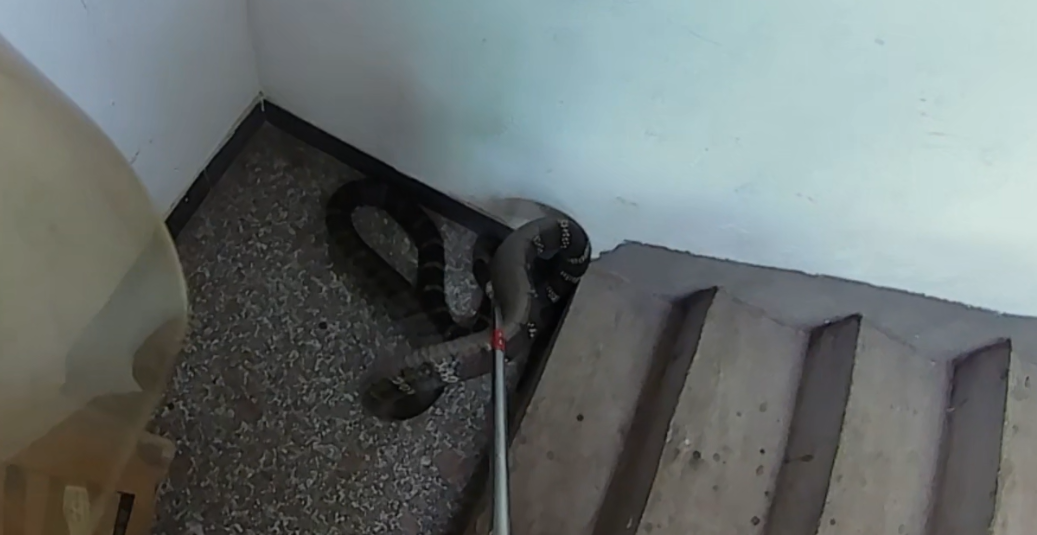 惊险!江西居民楼闯入3米长眼镜王蛇,消防员成功捕获放归山林