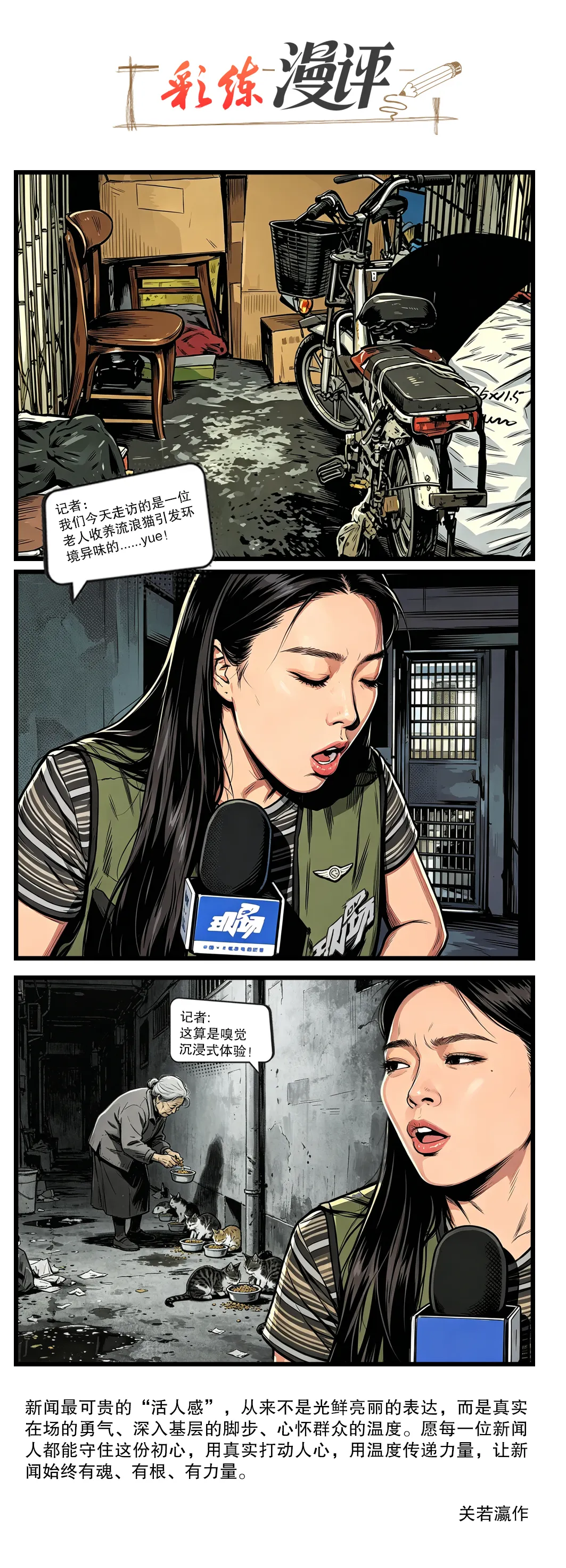 广东广播电视台《DV现场》记者王晓黎在采访老人收养流浪猫引发环境异味的新闻时,被刺鼻气味呛得频频干呕,相关画面意外登上热搜,被网友称为“最具真实感的报道”。不少人感慨:这才是新闻该有的“质感”。这场意外走红,让我们清晰看到:优质新闻从不是精心包装的华丽表达,而是真诚、在场且有温度的真实记录。