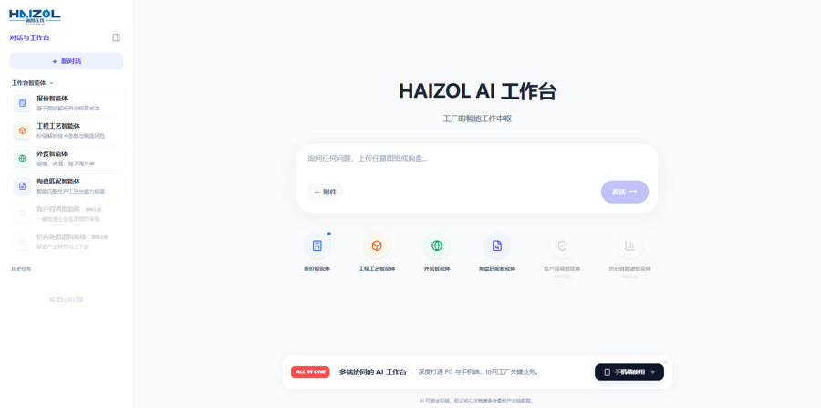 在全球AI竞赛聚焦参数与算力之际,上海正探索让大模型技术深度融入实体经济的新路径。4月20日,上海工业数字化企业海智在线推出“制造业智能体工作台”,通过整合十年工业数据与大模型能力,为AI赋能制造业提供清晰落地方案,同时助力创新创业想法快速转化为产品。